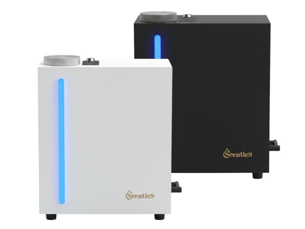 The HV SMALL Pro aroma diffuser is the ideal solution for hotels, lobbies, reception areas, companies, showrooms, fitness centers, and shops. High-quality metal construction, patented cold atomization, and minimal maintenance ensure a stable scent in the space long-term.